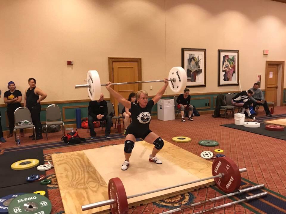1 Hang High Pull + 1 Hang Power Snatch + 2 Floating (below knee) Squat Snatch + 1 OHS
